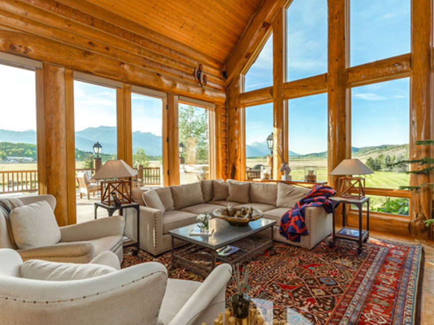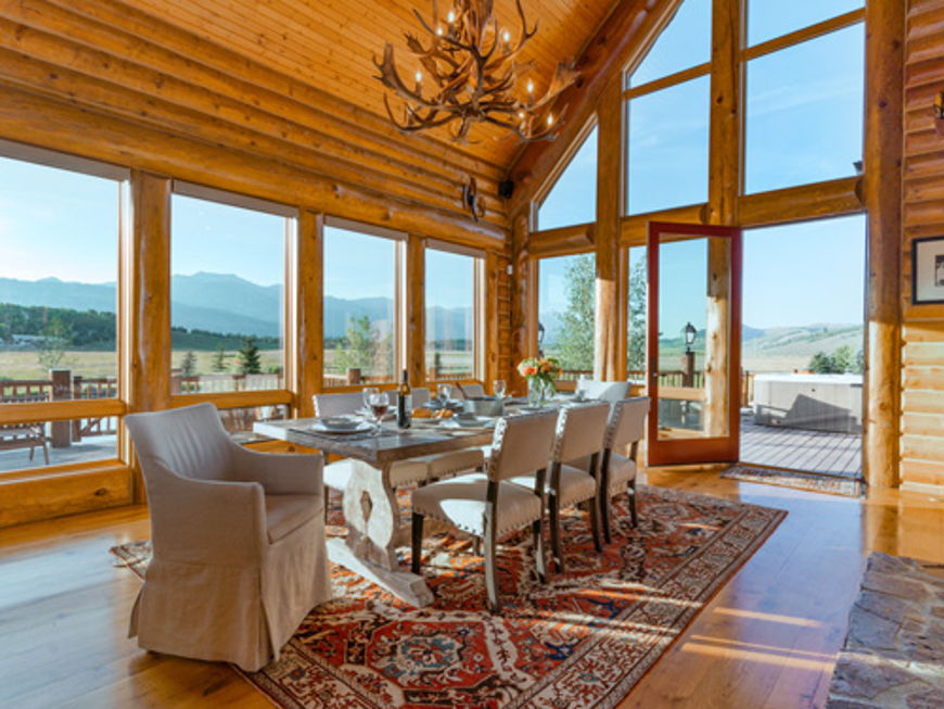 The ranch was built in 1975 and spans seven acres in total. It is located in Jackson Hole, a picturesque mountain valley close to the town of Jackson in the US state of Wyoming. The main house in an American “Log Cabin” style underwent rebuilding and extension work over a period of two-and-a-half years from 2010 onwards, using the highest quality materials and at a cost of several million US dollars. Just one of the characteristics preserved are the incredible 12-metre-high window frontages which ensure both panoramic views and light-flooded interiors. The total living space spans almost 700 square metres, with six bedrooms and seven bathrooms. In addition, the property presides over two fully fitted kitchens and several open plan living and dining areas featuring rustic wood panelling and solid stone fireplaces. “The log cabin architecture and the signature high ceilings give the property both a sense of cosiness and a feeling of freedom and space,” says Andrew Ellett. “Building with such high ceilings is no longer permitted in Teton County. This makes the property one of the last of its kind – a fact made even better by the completely modernised state it finds itself in.”
